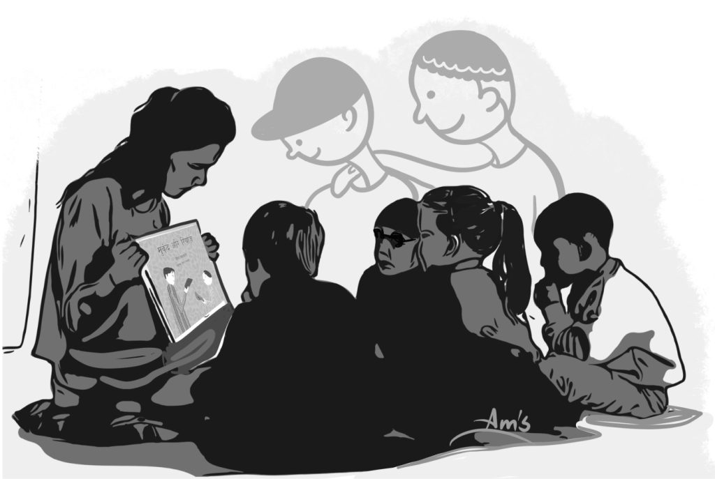 8 वर्षं आम्ही ह्या मुलांबरोबर काम करतोय. त्यांचं लेखन, वाचन, गणित यामध्ये सुधारणा व्हावी ह्यासाठी अभ्यासकेंद्रात त्यांना मदत केली जाते. आणि त्याबरोबरीनं आत्मसन्मान, जबाबदारीची जाणीव अशी सामाजिक-भावनिक कौशल्यंही शिकवली जातात. खेळ, नाटक, कलाकुसर, प्रकट वाचनही घेतलं जातं. अशाच एका तासाला आम्ही निना साबनानी ह्यांचं ‘मुकंद आणि रियाज’ हे पुस्तक वाचलं होतं.