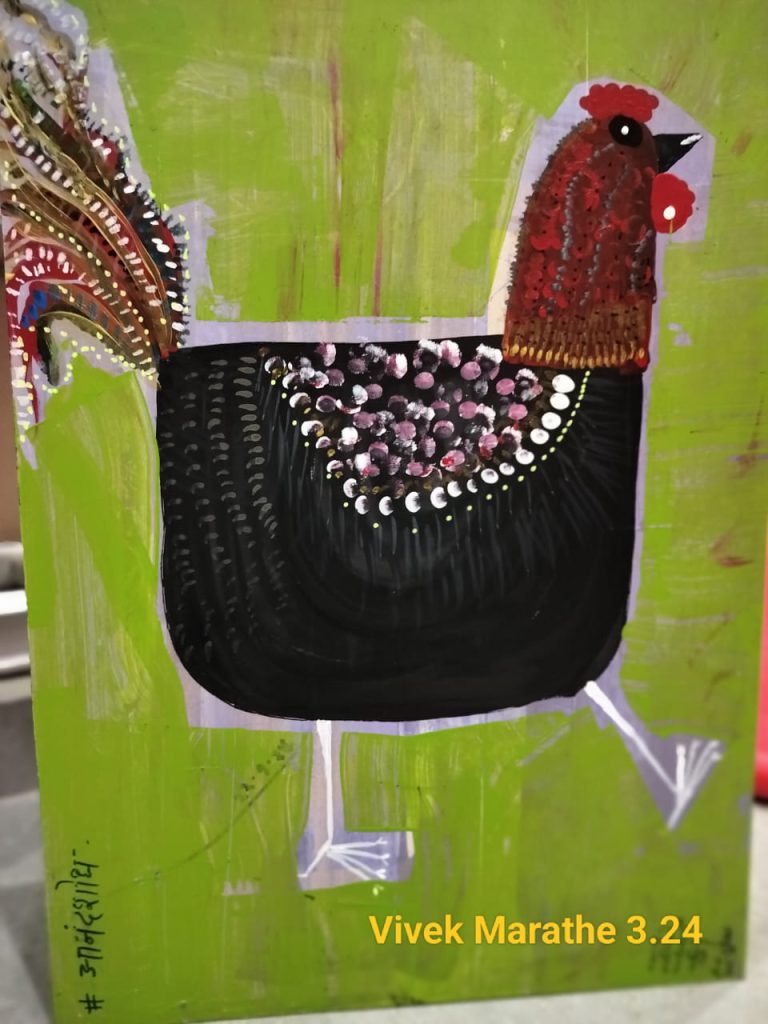 २०२३ च्या ऑक्टोबरात मी खोक्यांवर चित्र काढायला सुरुवात केली. एकही चित्र आधी पेन्सिलनं काढून मग रंगवलं नाही. थेट रंग वापरून साप, पाली, सरडे, बेडूक, मासे, मांजरं, माझा आवडता बहावा आणि अन्य झाडं, धनेश पक्षी असं रोज नेमानं काढू लागलो. ब्रशऐवजी कधी बोटांचे ठसे, इअर बड्स वापरायला मजा येऊ लागली.