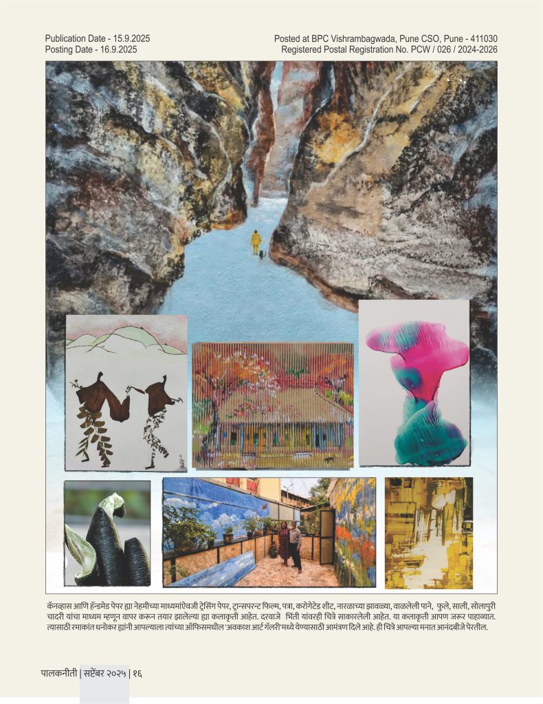 वाचकहो, या सगळ्या प्रवासाचा आपणही भाग आहात. पालकनीतीची मुखपृष्ठे आपण पाहत आला आहात. त्यातली बहुसंख्य मुखपृष्ठे हा रमाकांत धनोकर ह्यांच्या चित्र-प्रतिभेचा आविष्कार आहे. अनेकदा मुलांसह चित्रे काढल्यावर त्याबद्दल त्यांनी लिहिलेले टिपण – त्यातले कलाकाराच्या दृष्टीने हेरलेले विशिष्ट मुद्दे – वाचलेले आपल्याला आठवत असेल.