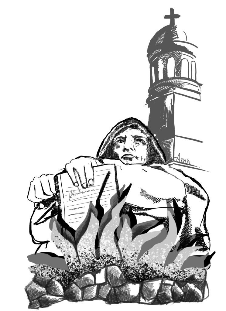 घरी आल्यावर रागाने फणफणतच ती नवर्याला म्हणाली, ‘‘इन्क्विझिशन ज्याची चौकशी करते आहे अशा माणसाचं देणं कोण फेडत बसेल?’’ चर्चने त्याच्याबाबत सौम्य भूमिका घेतल्याबद्दल झुंटो आनंदात होता. मात्र वसुलीसाठी त्याच्या बायकोने चर्चला मारलेल्या असंख्य फेर्यांबद्दल त्याला वाईटही वाटत होते.