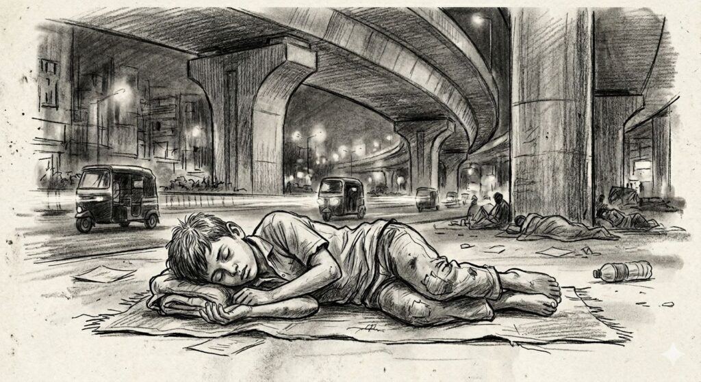 पहिले चार दिवस नूरला उपास घडले. पण या महानगरानं इतर असंख्य माणसांसारखं नूरलाही आपल्या कुशीत घेतलं. नूर हमाल बनला. ओझी उचलू लागला. रात्री दमूनभागून पुलाखाली आडवा झाला, की मिटल्या डोळ्यांपुढे आईची मूर्ती उभी राही. ‘थोडे दिवस, थोडे दिवस,’ अशी मनाची समजूत घालता, घालता कधीतरी त्याला झोप लागून जाई. अश्रूंचे ओघळ गालावर सुकून जात.
